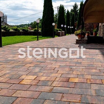 Набор камней среднего формата трех размеров. Удачная комбинация размеров дает красивый визуальный эффект, а относительно небольшой размер камней позволяет производить ручную укладку, без применения специализированной техники. Минимальный размер фаски обеспечивает очень комфортное перемещение как пешком, так и на велосипеде, поэтому данные камни идеальны для мощения парков, бульваров, скверов, пешеходных зон. Наличие широких рустов на боковой поверхности плитки полностью исключает смещение камней в горизонтальной плоскости.